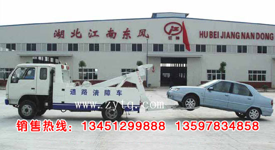該小型清障車的特點是:車身短,能在小院子里作業(yè),適合修理廠使用,廠地面積小的地方使用。