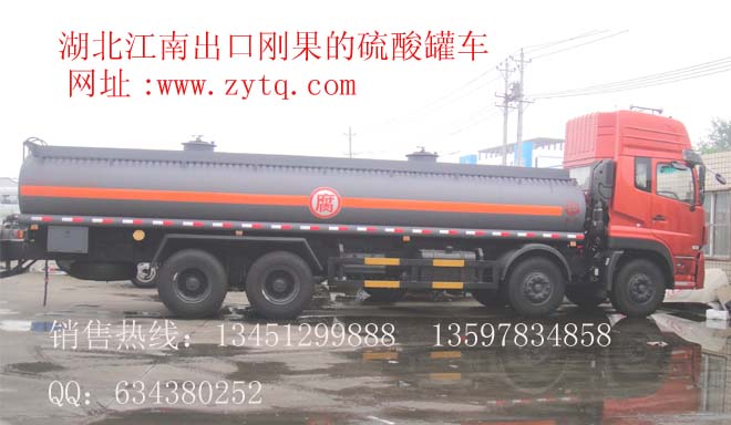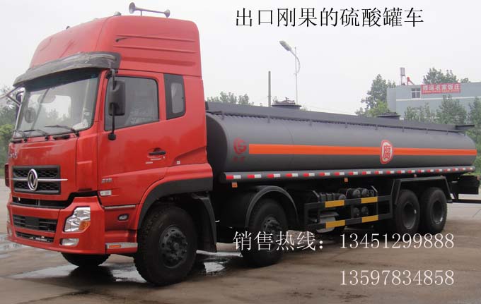 2010年7月27日,我公司出口了一臺硫酸罐車到剛果**,此車采用東風天龍前四后八的的底盤,罐體20立方米車輛圖片如下
